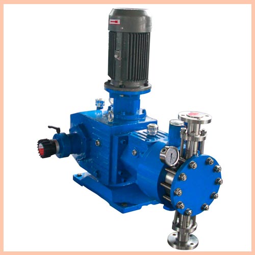 機械隔膜泵:由電機驅動,由電機帶動旋轉,測量泵的柱塞做往復直線運動,從而帶動機械隔膜實現往復運動,實現液體的吸收或排出。